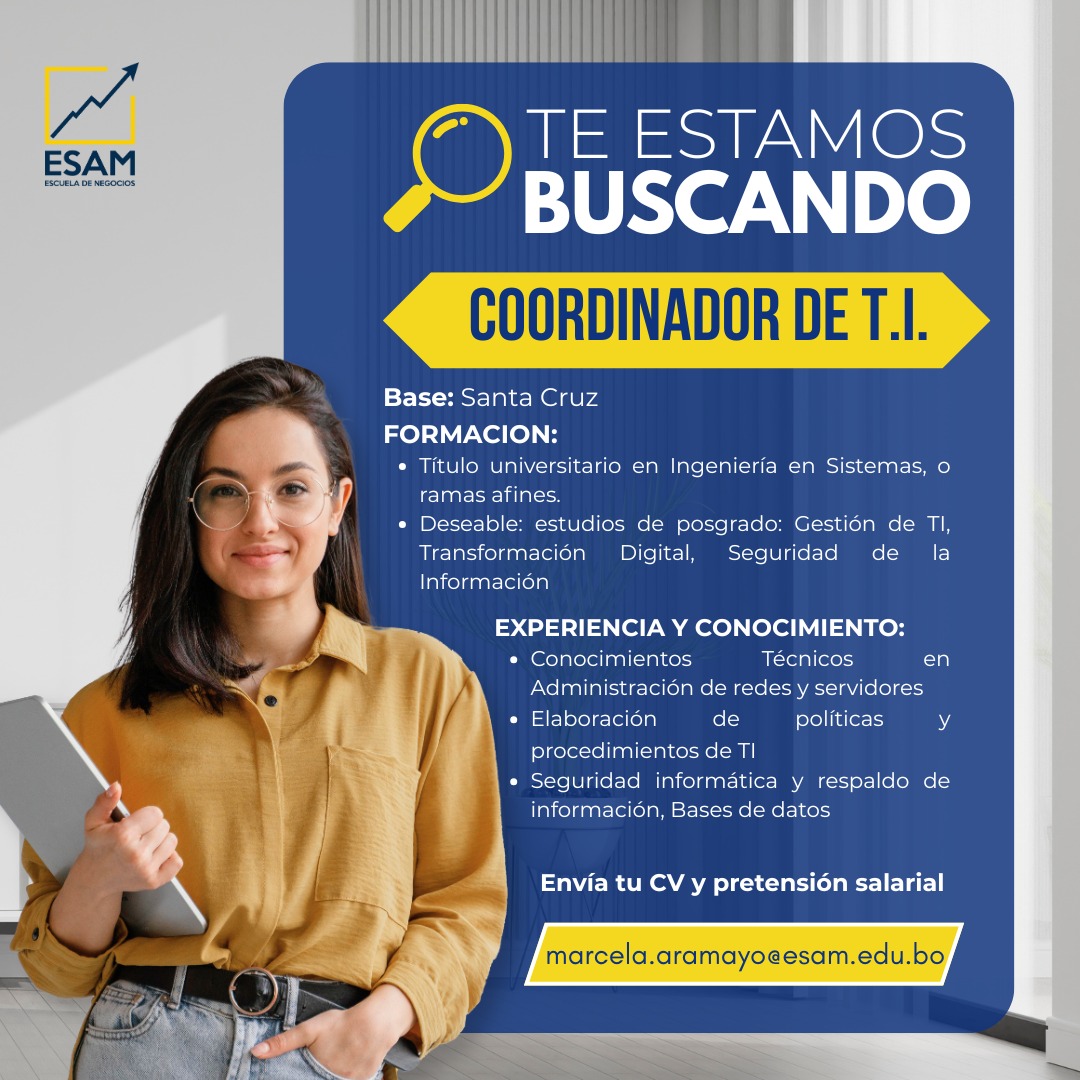 • Deseable: estudios de posgrado: Gestión de TI, Transformación Digital, Seguridad de la Información.