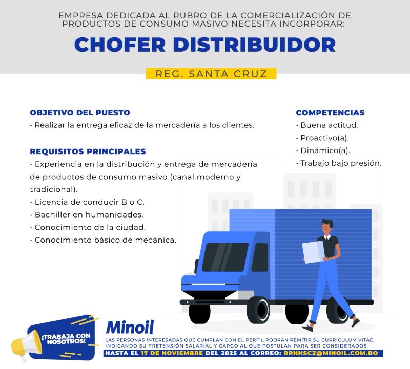 Envía tu CV a: rrhhscz@minoil.com.bo