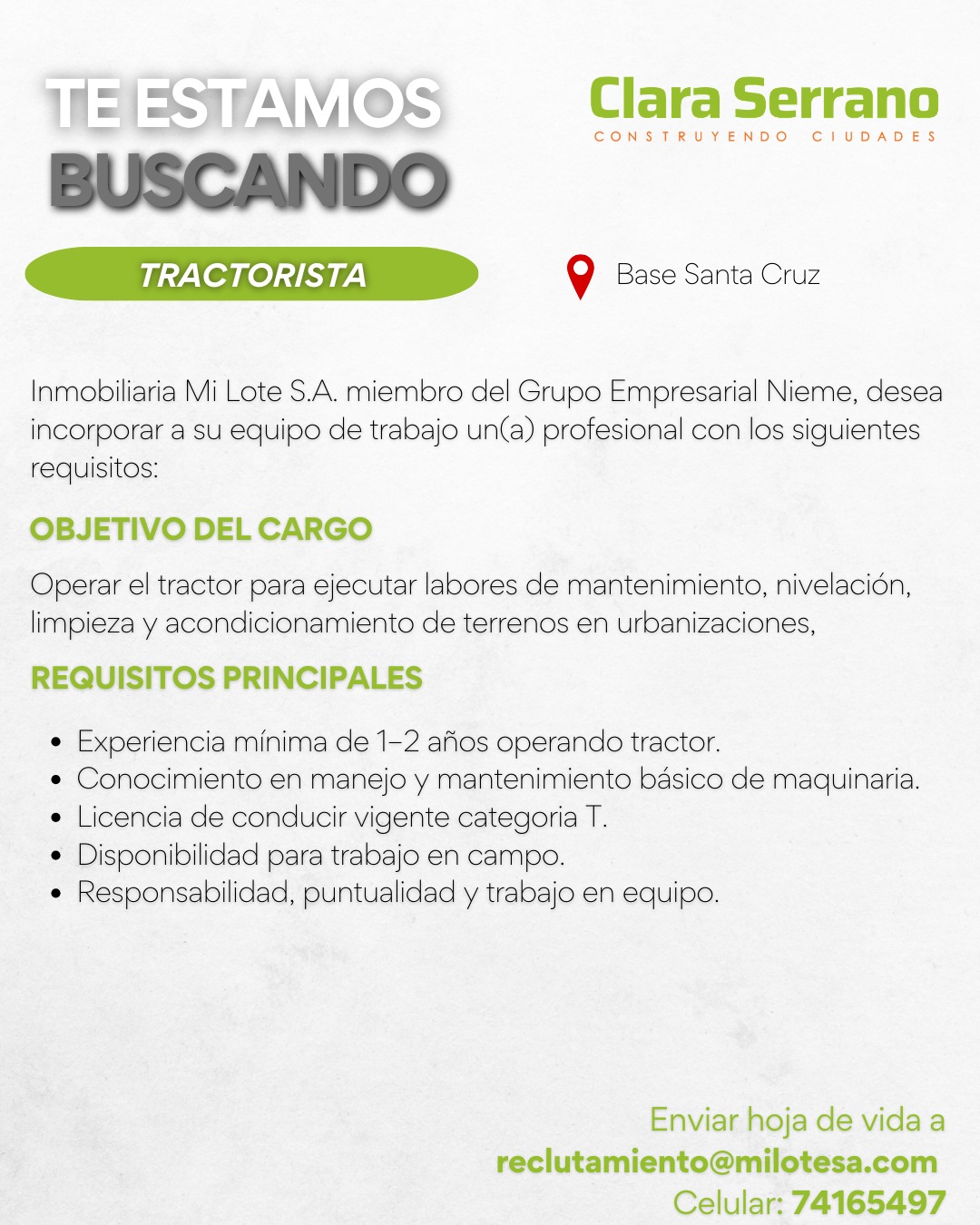 Si tienes experiencia operando tractor, conocimientos básicos de maquinaria y disponibilidad para trabajo en campo, esta puede ser tu oportunidad.