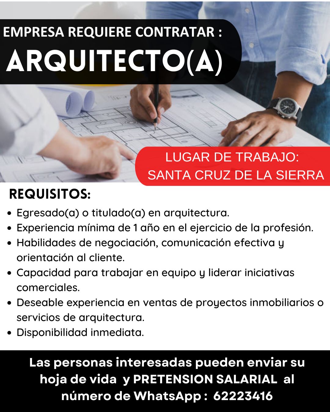 Personas que cumplen con los requisitos deben enviar su hoja de vida al WhatsApp 62223416 (Indicando su pretensión salarial)