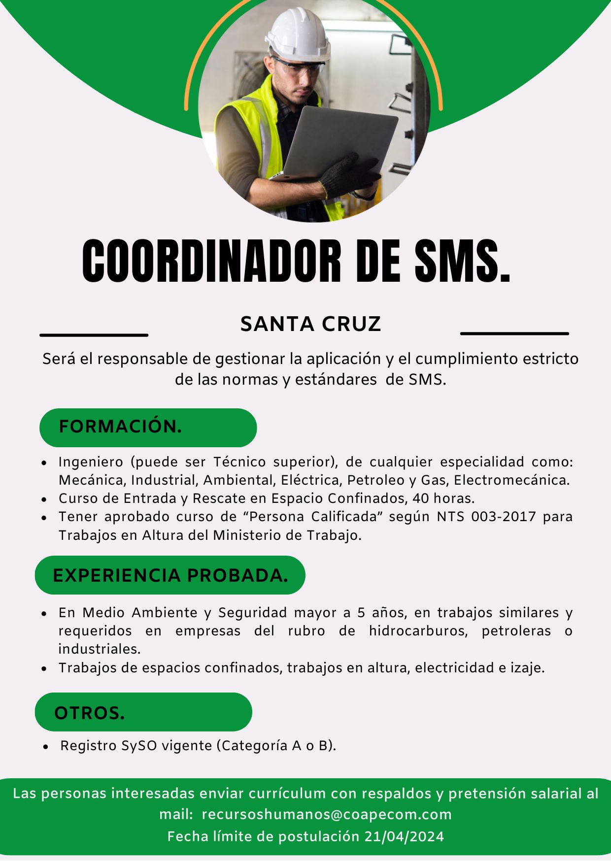 Las personas interesadas enviar currículum con respaldos y pretensión salarial al mail: recursoshumanos@coapecom.com