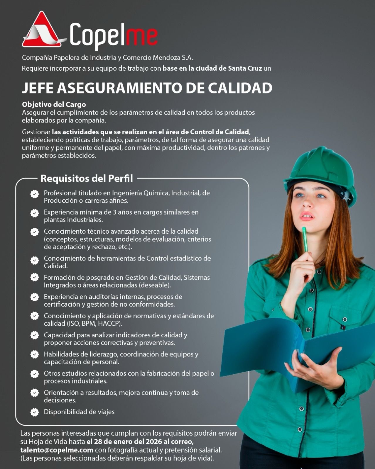 Envía tu CV con fotografía y pretensión salarial a talento@copelme.com