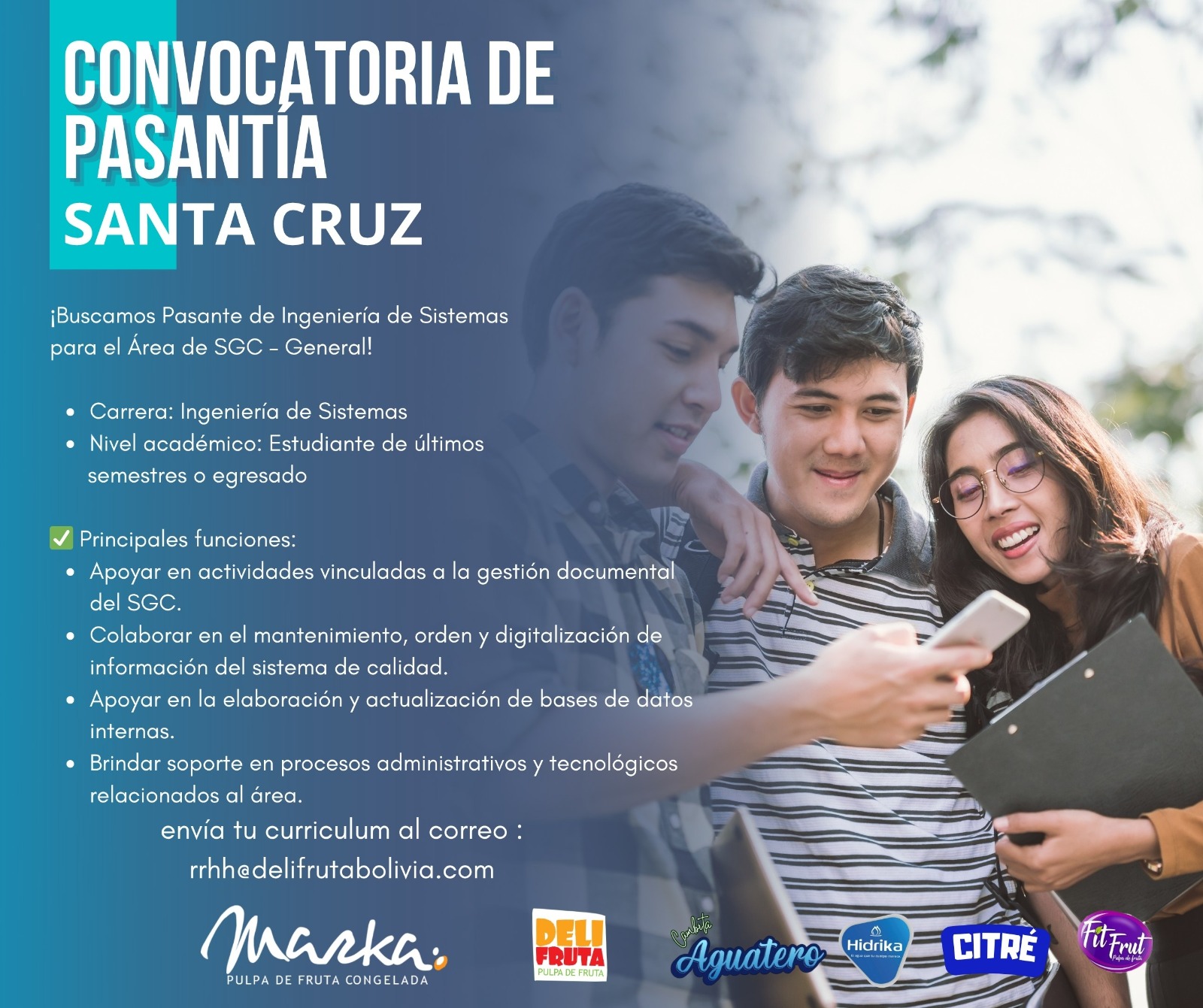 Envía tu currículum actualizado al correo: rrhh@delifrutabolivia.com