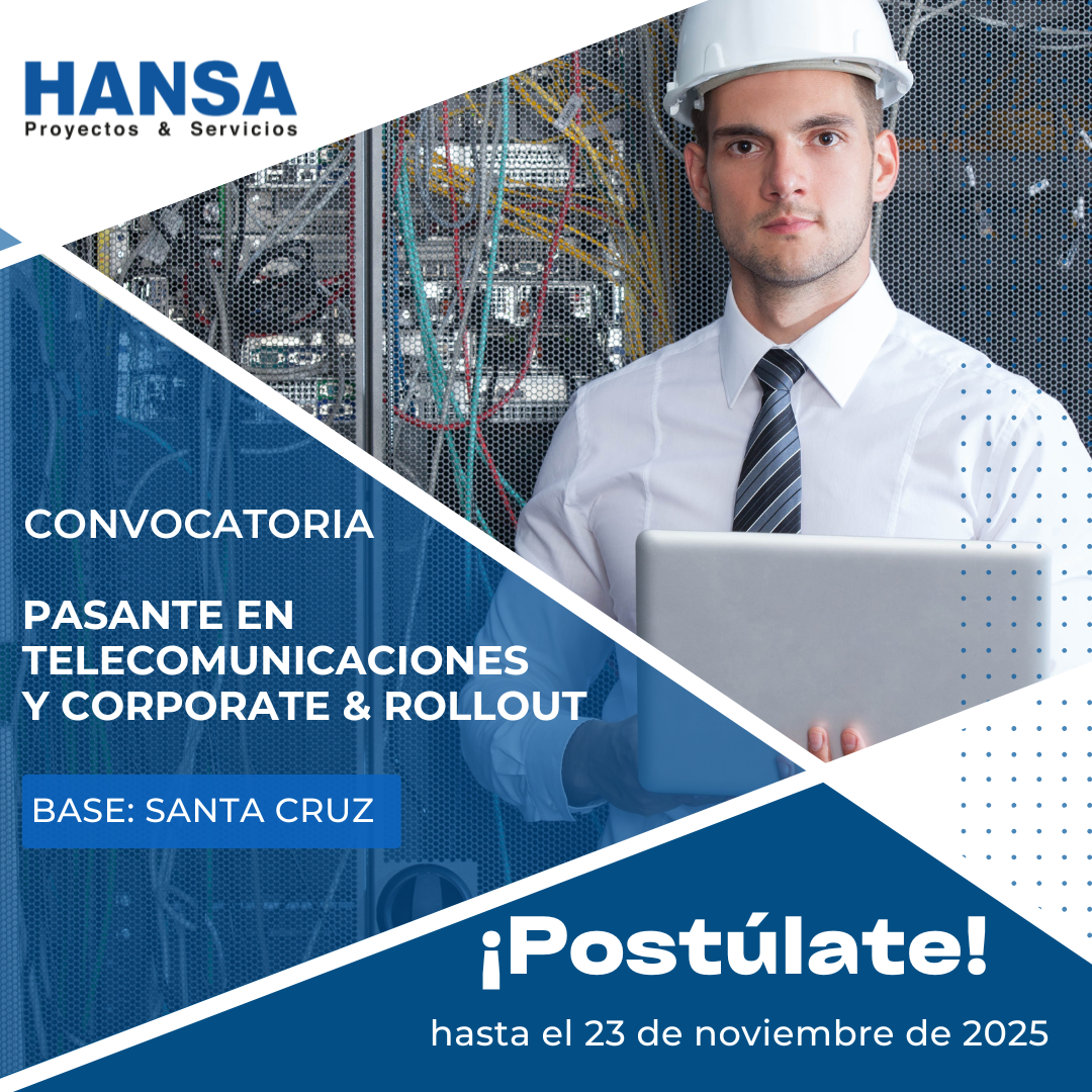 📢 CONVOCATORIA DE PASANTÍA EN EL ÁREA DE TELECOMUNICACIONES Y CORPORATE & ROLLOUT