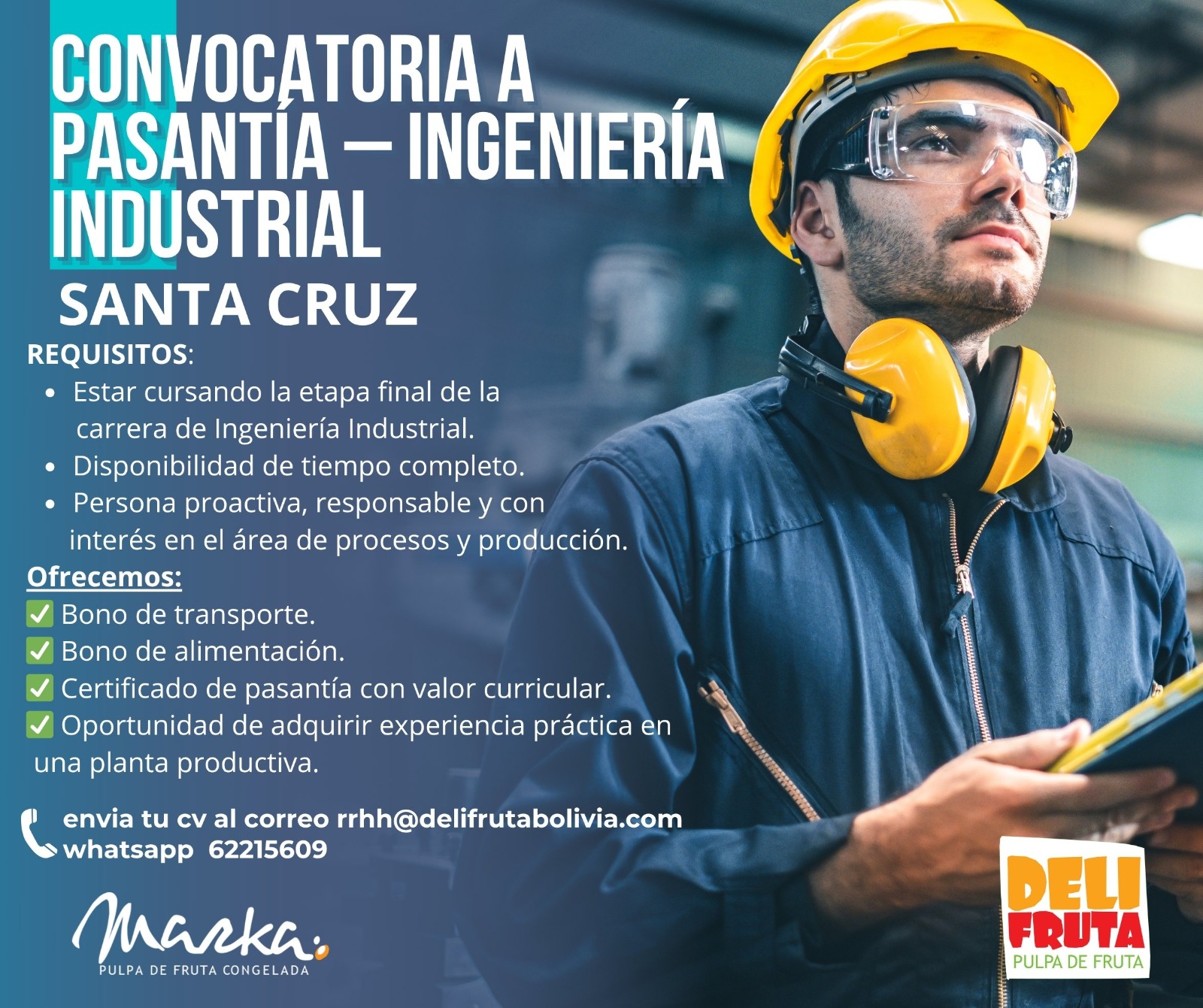 Envía tu CV al WhatsApp 62215609, indicando el área de interés.