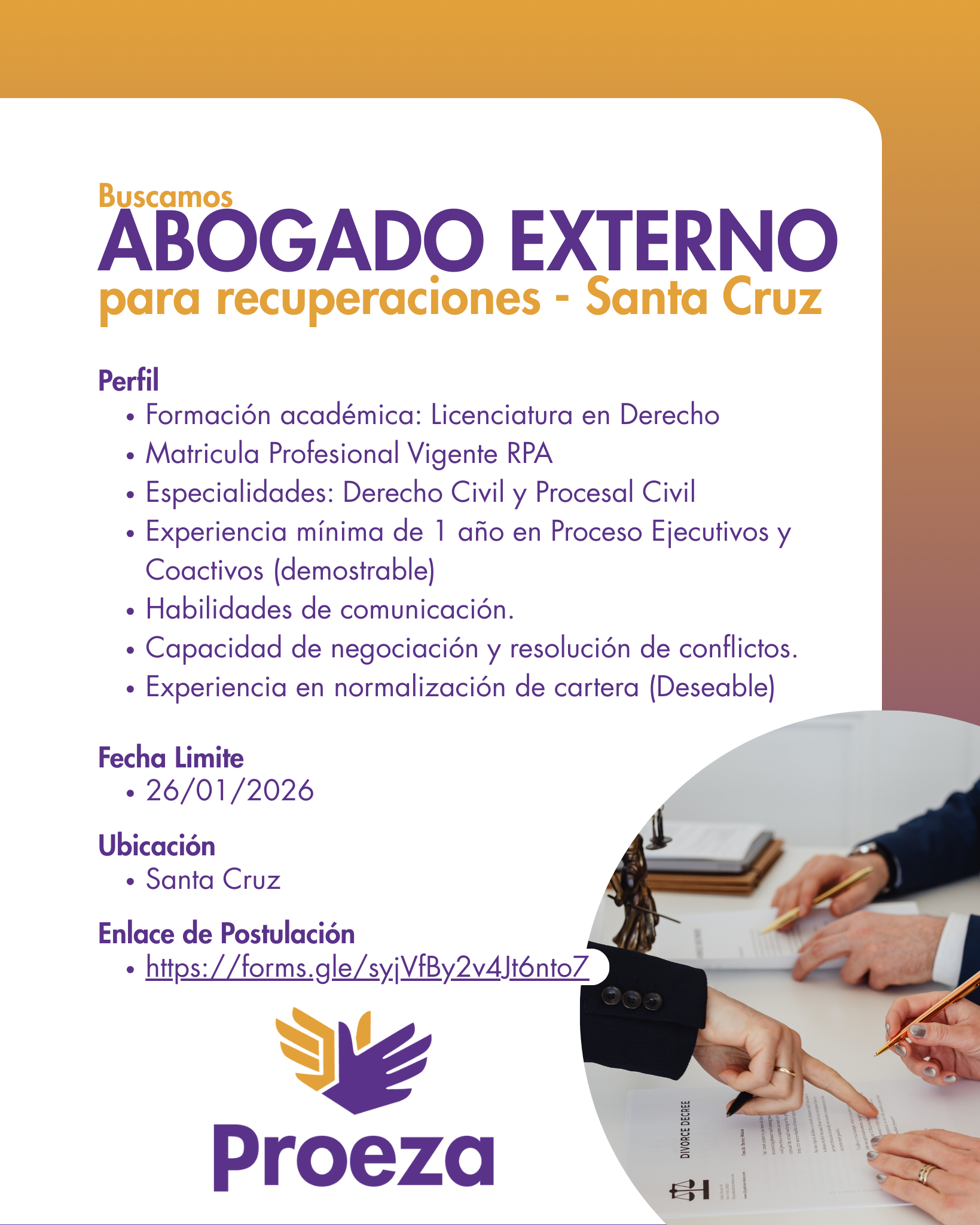 CONVOCATORIA ABIERTA – ABOGADO EXTERNO PARA RECUPERACIONES