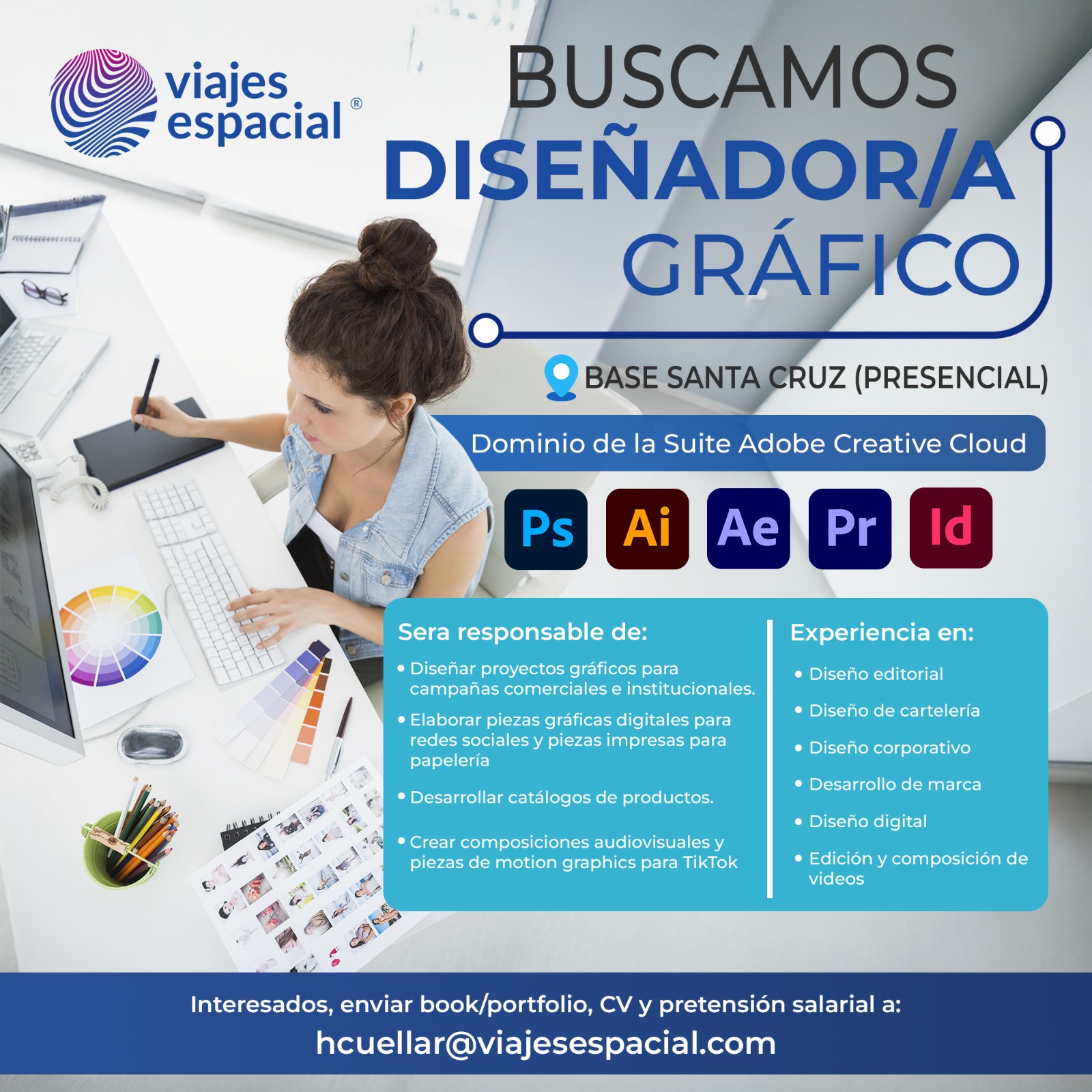 📣 ¡En Viajes Espacial – Especialistas en Cruceros estamos buscando un/a Diseñador/a Gráfico/a para unirse a nuestro equipo en Santa Cruz!