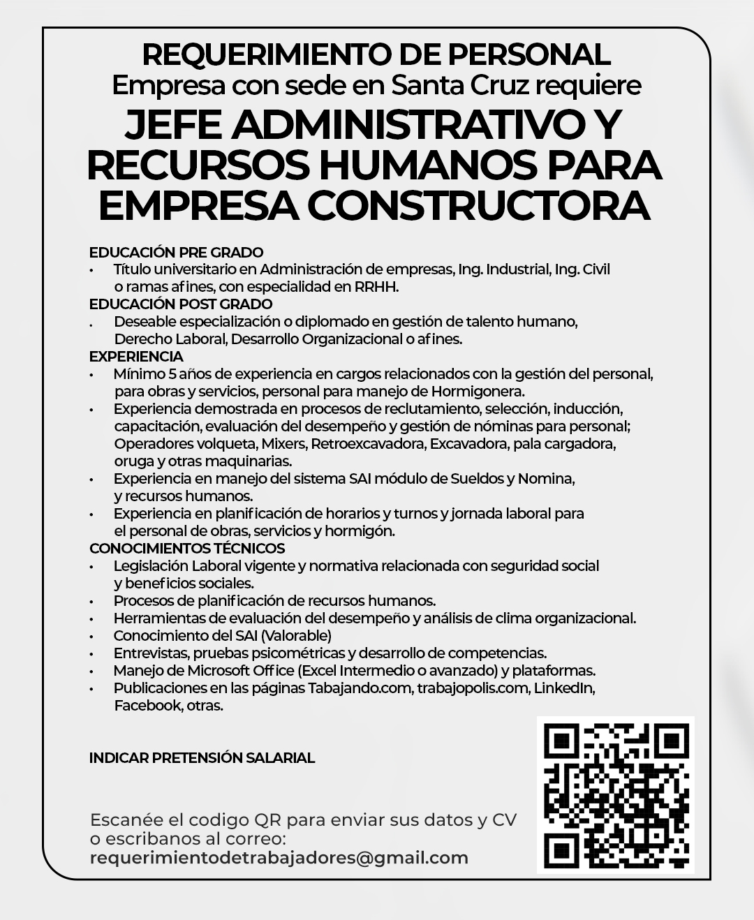 Santa Cruz · Recursos Humanos y Capacitación · Jornada completa VENCIDO