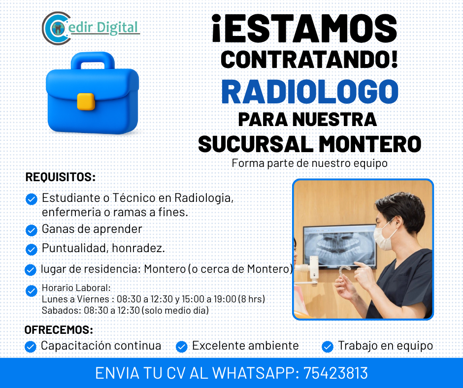 - Estudiante o Técnico en radiología, enfermería o ramas a fines