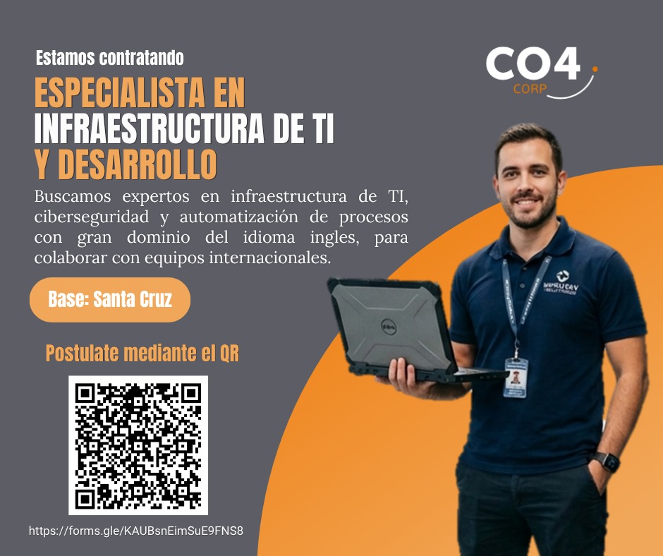 Estamos en búsqueda de un Especialista en Infraestructura de TI y Desarrollo que se una a nuestro equipo, contribuyendo a fortalecer nuestro entorno tecnológico, garantizar la seguridad de la información y optimizar procesos mediante automatización.