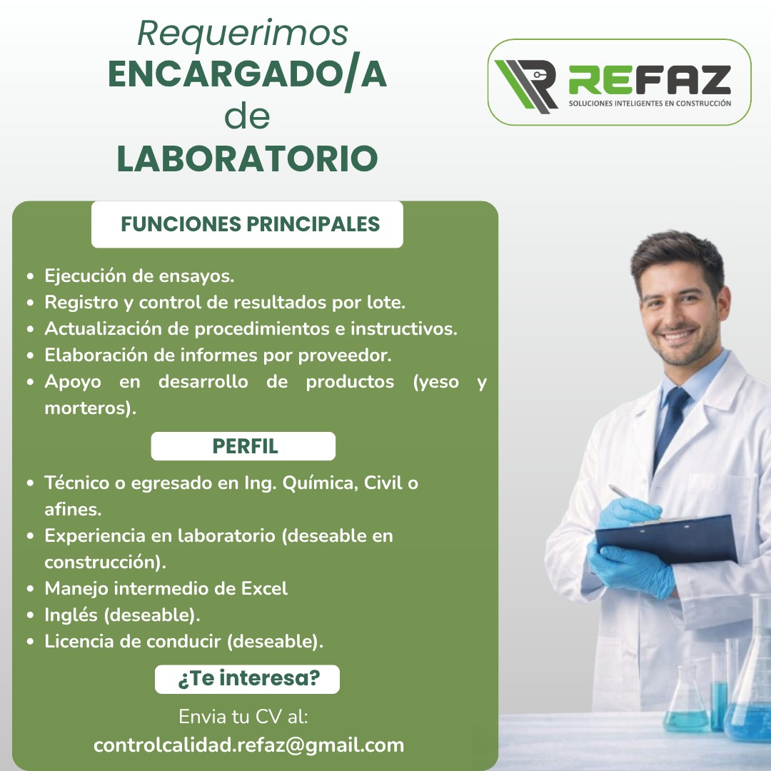 • Experiencia básica en laboratorio (ideal en construcción)