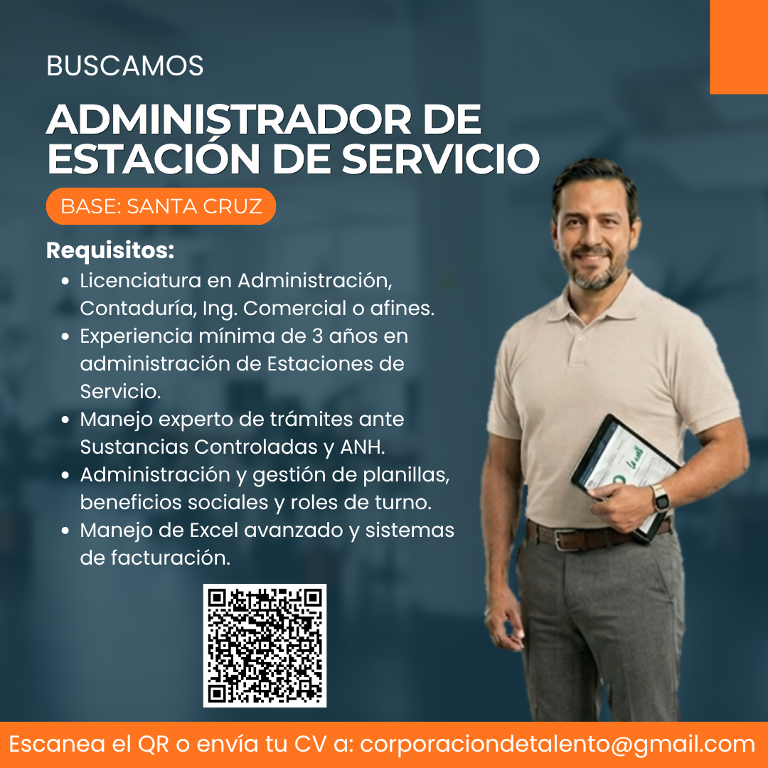 - Mínimo de 3 años de experiencia comprobable en cargos de administración de estaciones de servicio.